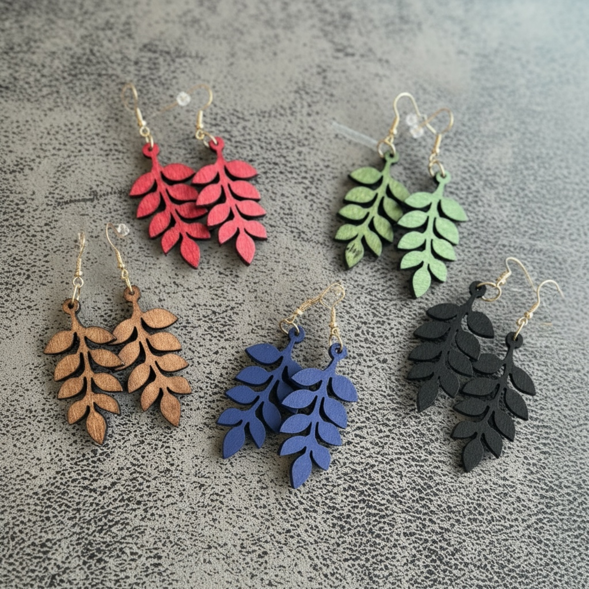 🌿 Kevyet puulehtikorvakorut – useita värejä