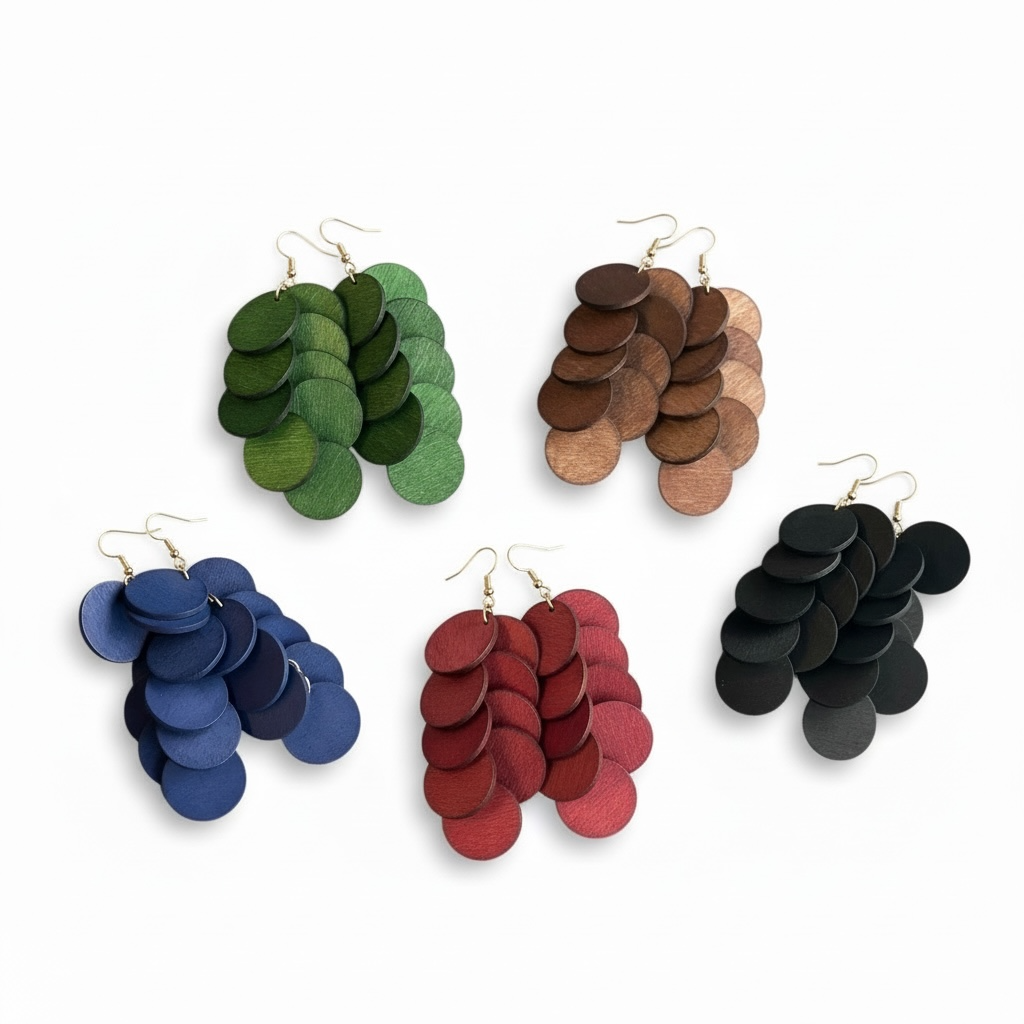 Puukorvakorut – kerroksellinen ,pyöreä malli