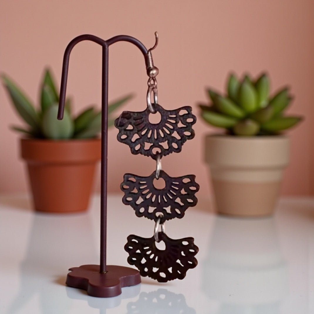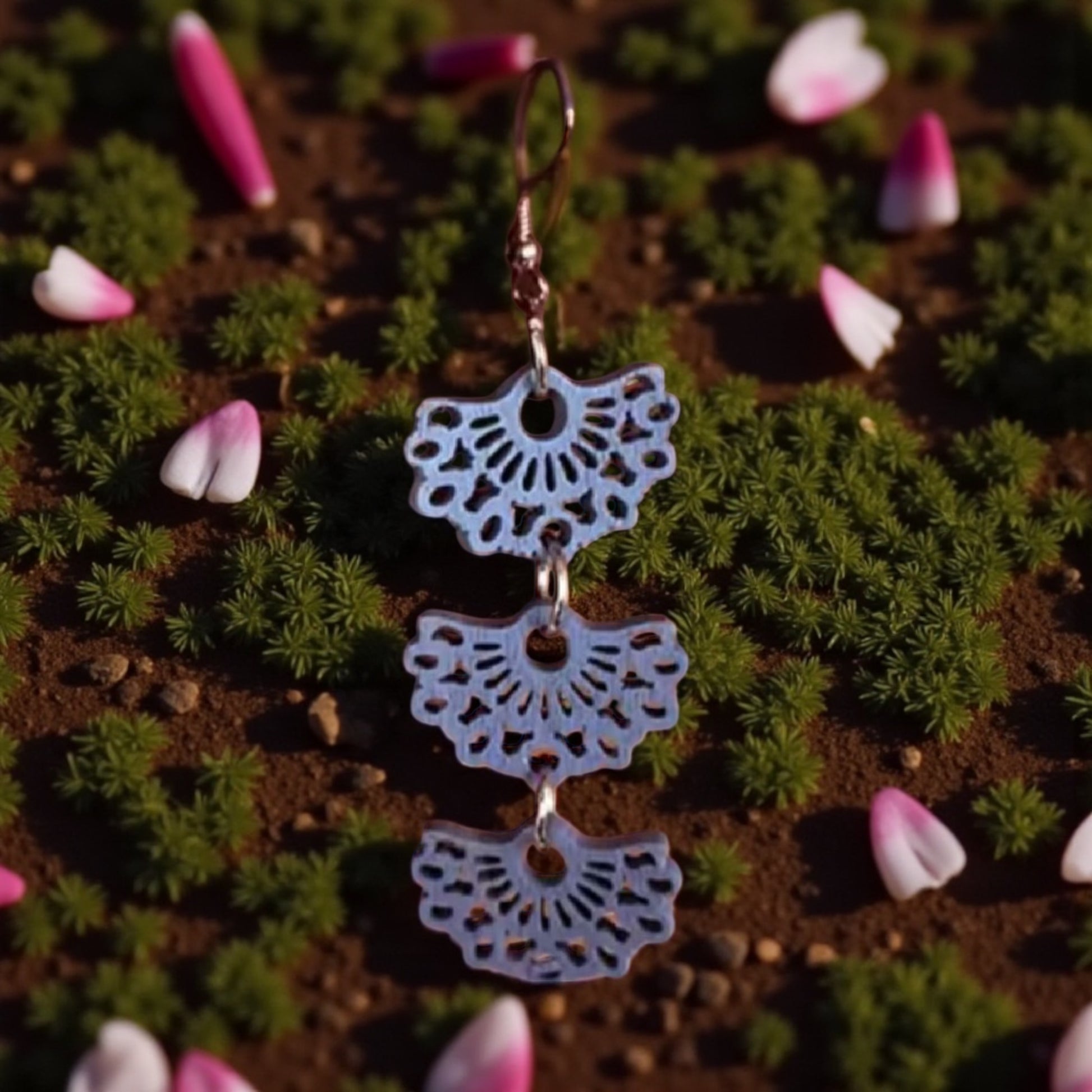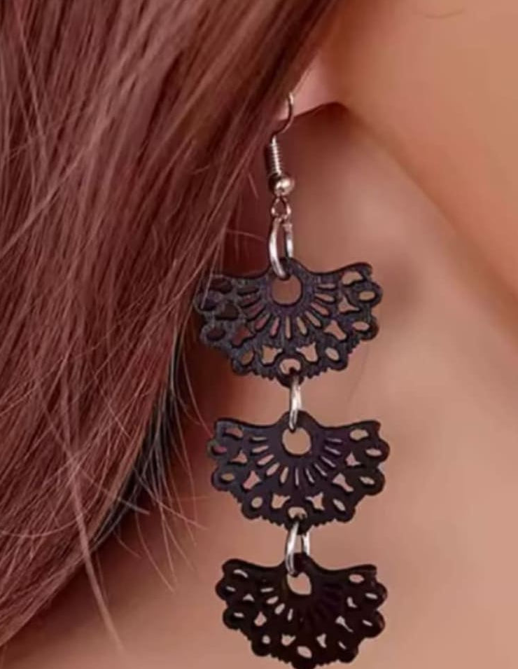 Nämä kolmiriviset mustat tai farkun siniset pitsikorvakorut tuovat asuusi upeaa eleganssia ja ainutlaatuista muotoilua. Keveät, taidokkaasti leikatut koruosat liikkuvat kauniisti ja vangitsevat katseet. Täydellinen valinta sekä juhliin että arjen tyylin kohottamiseen!
