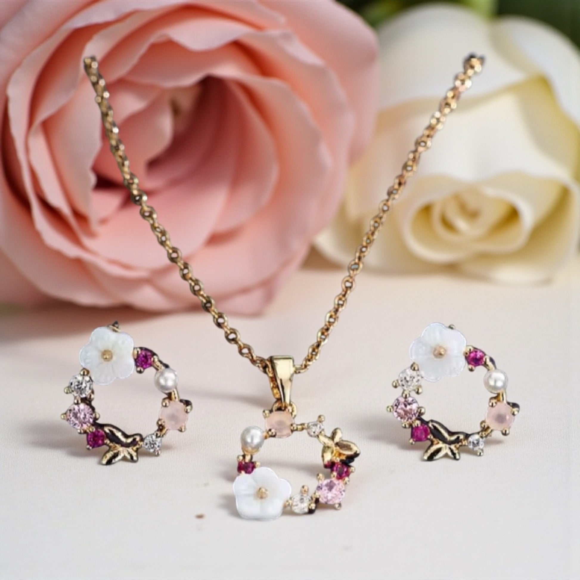 Kukkaseppele-korusetti – kaulakoru & korvakoru
